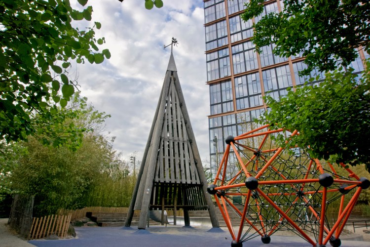 From top left to right: Brooklyn Bridge Park Pier 6 kid’s playground, Prospect Park, Central Park, Brooklyn Bridge Park Pier 6 kid’s playground
